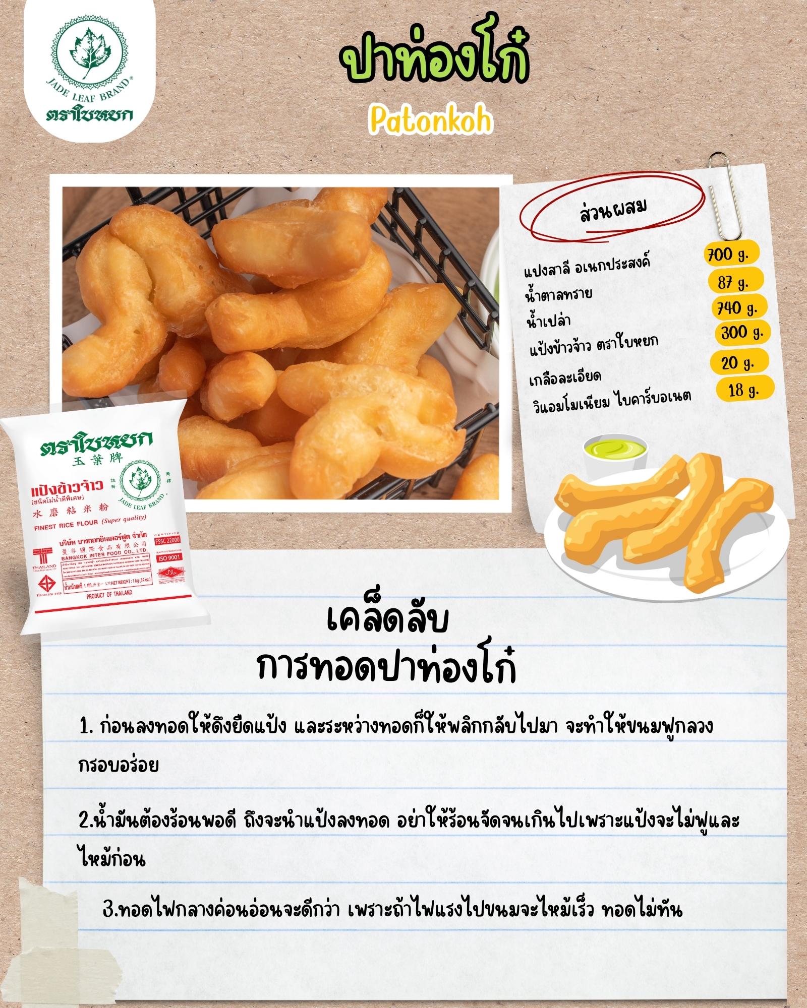 - น้ำมันต้องร้อนพอดี ถึงจะนำแป้งลงทอด อย่าให้ร้อนจัดจนเกินไป เพราะแป้งจะไม่ฟูและไหม้ก่อน